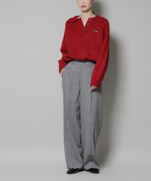 クラシカルな雰囲気のツイード素材が大人っぽい印象のロングパンツ。ワンタックとセンタープレスが入ったすっきりしたシルエットで、ONOFFどちらのスタイリングにも合わせやすく重宝する一本です。