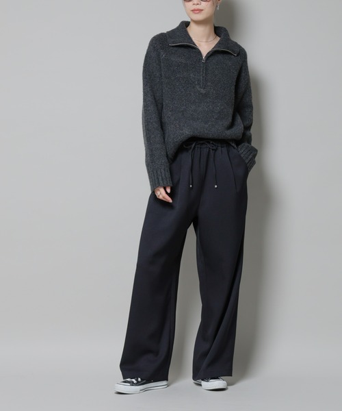 暖かみあるウールライクな見た目ながら、お手入れのしやすさが魅力のドロストイージーパンツ。サイドラインは同素材なので、カジュアルになりすぎず、さりげないポイントになるデザインです。