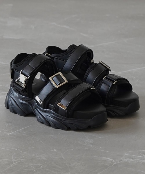 参考商品名:【ELLUV/エルヴ】+7cmハイソール PUレザーバックルベルテッドサンダル