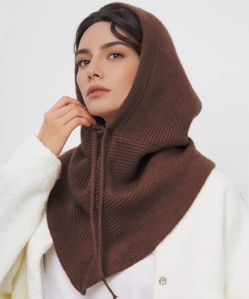 ■デザイン旬な防寒アイテムのニットバラクラバ。いつものコーデにプラスするだけでトレンドスタイルに。フードをかぶらない時は首まわりにボリュームが出てネックウォーマーとしても使えます