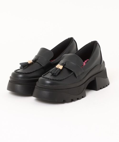 タッセル&チャンキーヒールの厚底ローファー。
