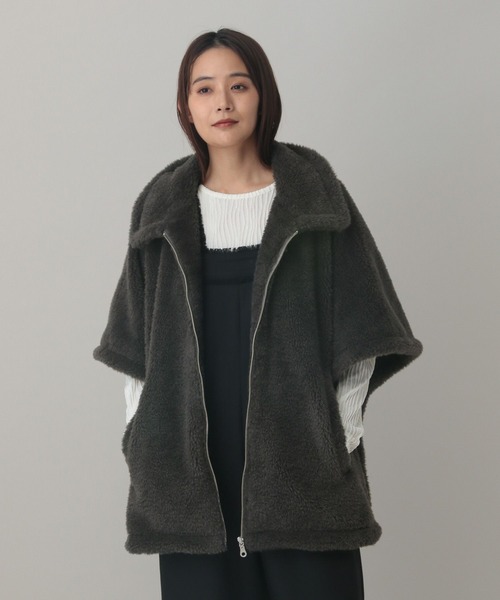 ふわふわのボア素材が、秋のムードをぐっと高めてくれるポンチョ。