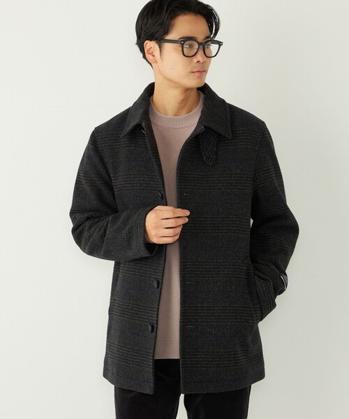 SHIPS Colorsで毎シーズンご好評いただいているチェック柄を採用した毛100%のコートに、今季はシングルタイプのピーコートが入荷!