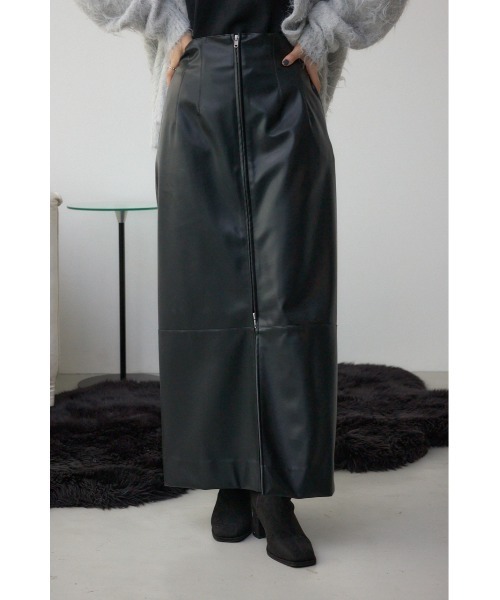 フェイクレザー/スエードの表情×フロントジップで、縦ラインが際立つ大人のタイトスカート。