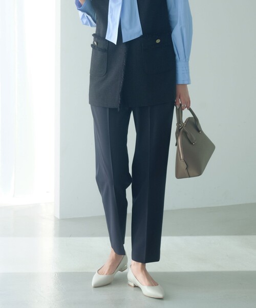 同素材のブラウスやジャケットと合わせて、セットアップとして着用いただくのがおすすめ。