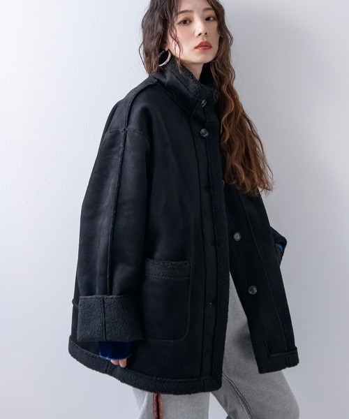 ボリューム感と洗練さを兼ね備えたフェイクムートンジャケット。