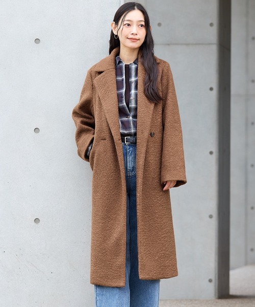 立体感のあるカーリーボア素材が季節感たっぷりのロングコート。