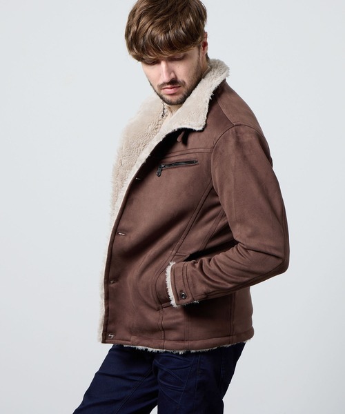 スウェードポンチ素材を表地を使用し、身頃裏全面にファーを配したデザインブルゾン。