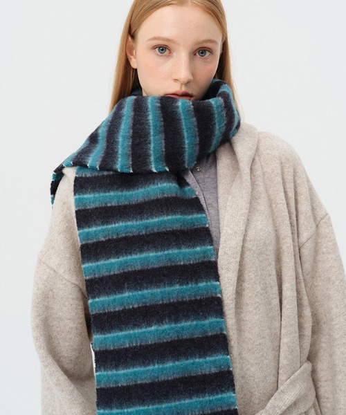 柔らかな質感と軽やかな印象が魅力のボーダーフリンジマフラー。