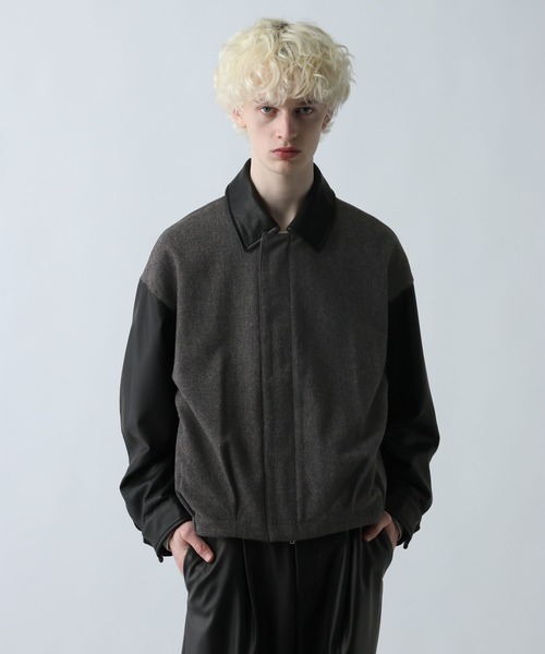 レザーとツイード生地でボディに切り替えデザインを入れたモードなブルゾンが登場