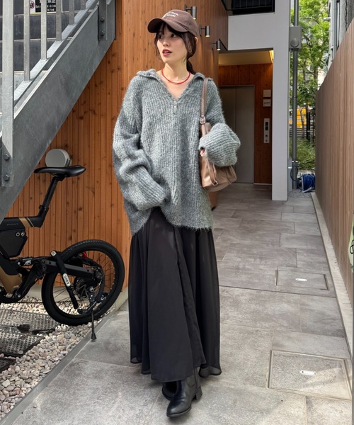 ・ふわふわニットはデニムやスラックス、ミニボトム×ブーツ合わせなど様々なスタイリングが叶います。