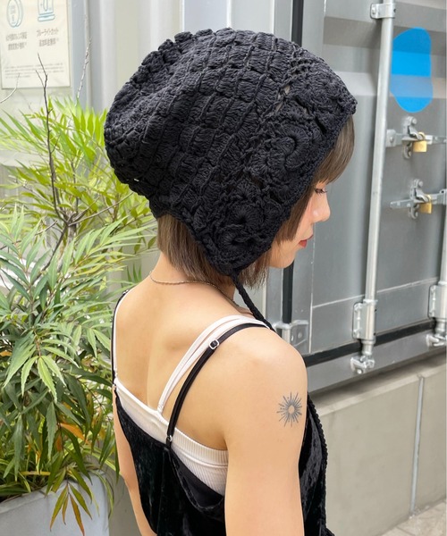 参考商品名:【HIKA】カギ編みサイドストラップニットCAP