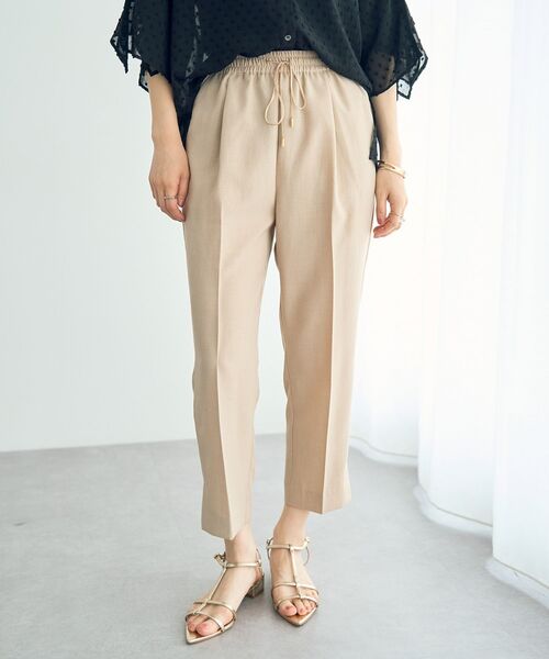 キーワード:パンツ レディース ウエストゴム クロップド テーパード ハイウエスト 無地