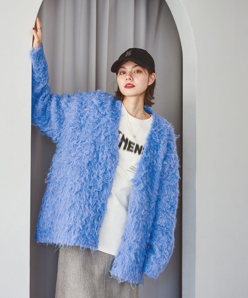 ■デザイン起毛感の可愛いシャギーニットカーディガン。