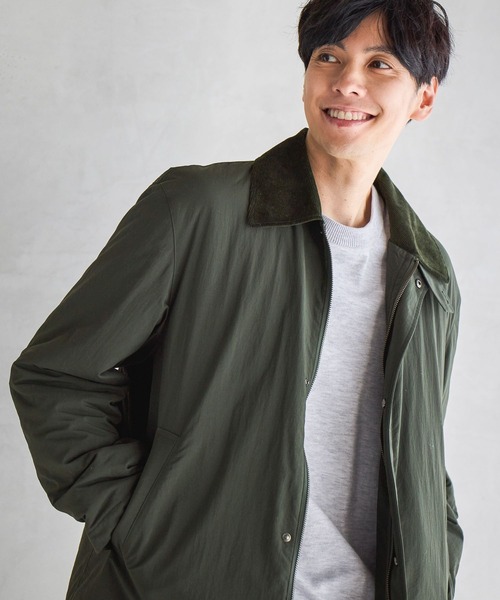 衿がコーデュロイ素材になったショート丈のブルゾンです。中綿を裏側でキルト状にすることで、保温性はそのままにボリューム感を抑えたデザインになっています。