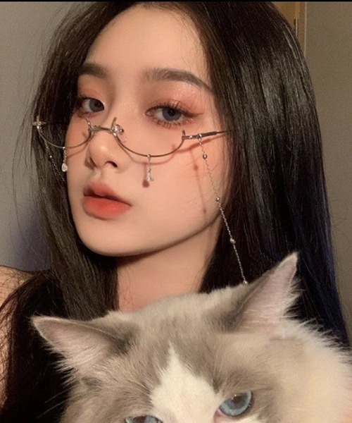 アンダーリムのメガネ。ビジューとチェーン付きでセクシーに!