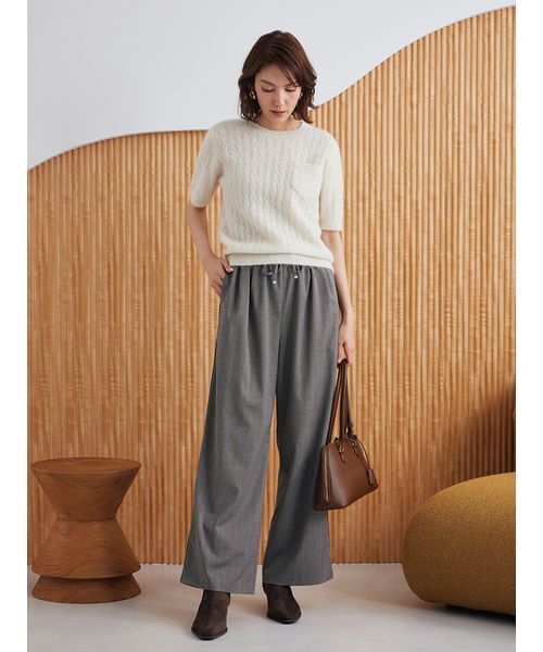 トレンド感あるヘリンボーン素材を使用したイージーパンツ。