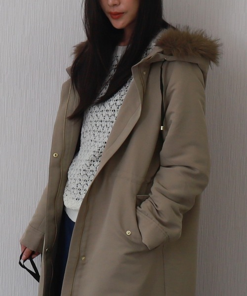 コート ブルゾン モッズコート ミリタリー ロング丈 アウター レディース 撥水 裏ボア フード フーディ 暖かい 防寒 冬 カジュアル