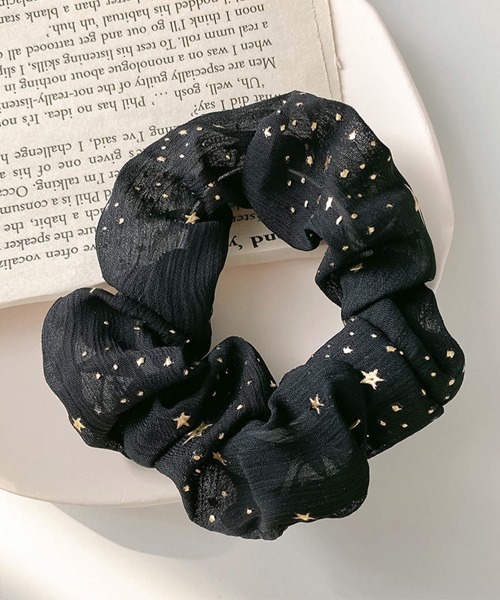 夜空のようなきらめきを散りばめた星柄シュシュ。