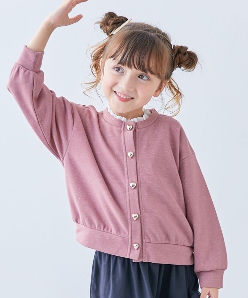 ハートのボタンと、きらっと光るラメがかわいいカーディガン。