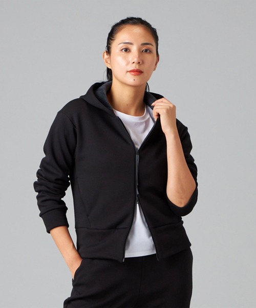 シンプルなデザインでコーディネイトしやすく、レッスン前の羽織として、行き帰りのワンマイルウェアとして便利。