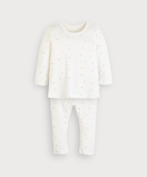 まるで紙吹雪(コンフェッティ)のように明るくカラフルなデザインのルームウェア。