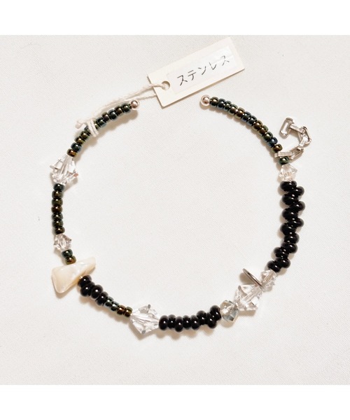papillonスワロフスキーやシェルなどのビーズをあしらったバングル