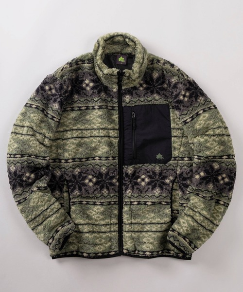 ■おすすめPoint毛足が長く暖かで温もりのあるシャギーボア素材が特徴の総柄フリースジャケット。これからのシーズンはもちろん、インナーの着合わせ次第では長いシーズンでご着用頂けます。袖口やポケット口、裾のパイピングに伸縮性を持たせる事で脱ぎ着もし易くストレスフリーな着心地となります。また襟裏もフリース仕様にする事で冷気や風の侵入をシャットアウトし抜群の保温性を実現◎サイズ感は余裕のあるゆったりシルエットで多くのアイテムとの相性も抜群。