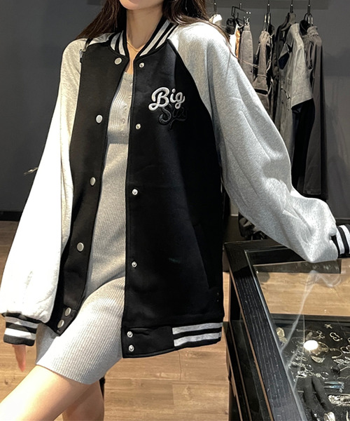 参考商品名:レディース ルーズシルエット刺繍ロゴスタジャン