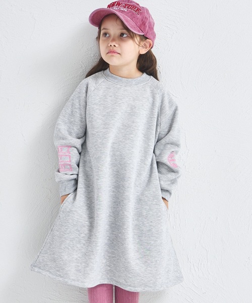両袖のロゴ刺繍がアクセントの、裏起毛ラグランワンピースが登場。