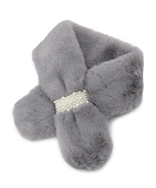パール調が印象的な華やかなフェイクファーティペットは寒い冬に暖かく使って頂けます。