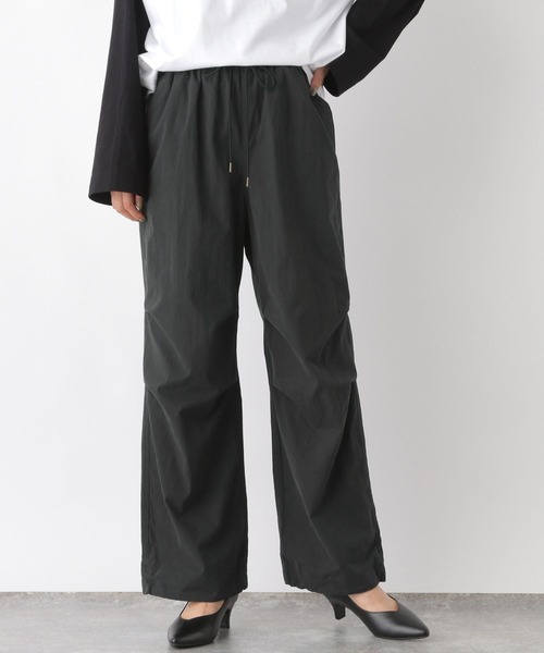 キーワード:カーゴパンツ レディース ウエストゴム ストレート ハイウエスト フルレングス 無地