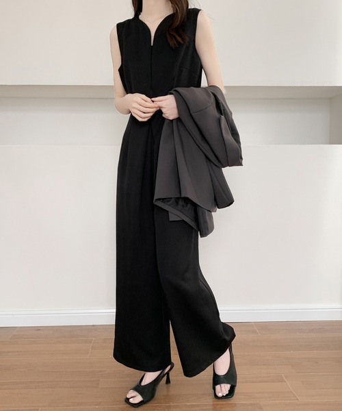 参考商品名:スキッパーネックワイドシルエットオールインワン
