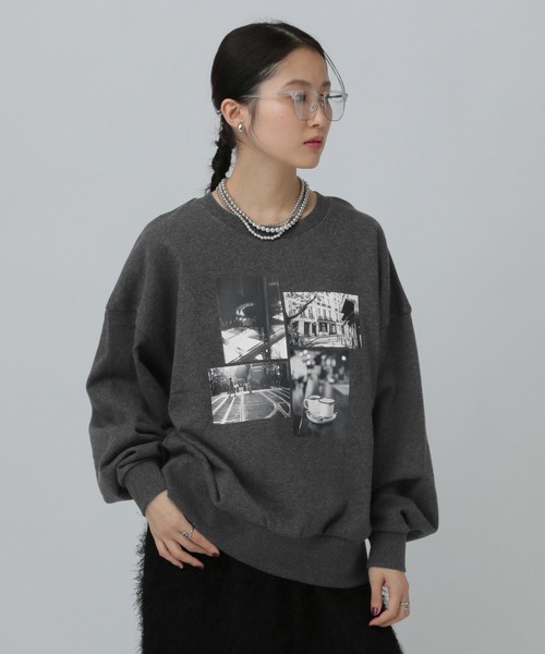 フォトと手書きメッセージがプリントされた裏毛スウェット