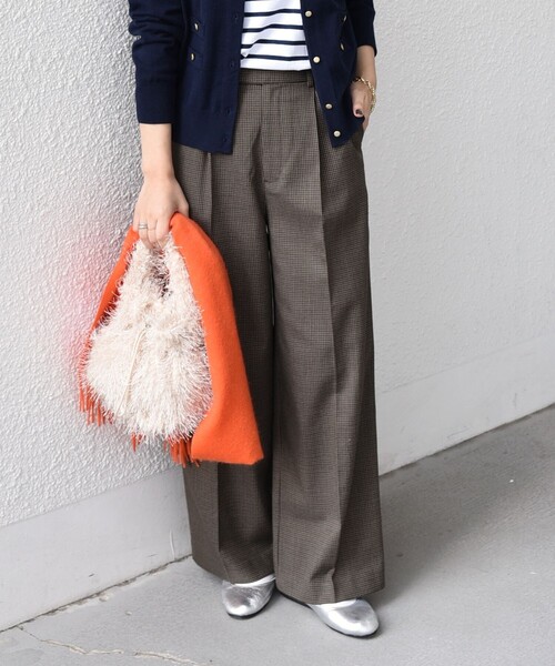 これからの時期に重宝する、チェック柄のワイドパンツ。