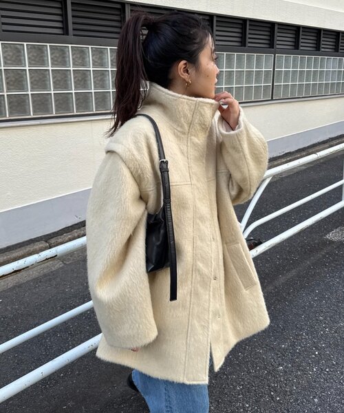 程よく上品な毛足短めのシャギー素材を使用したスタンドハーフコート。