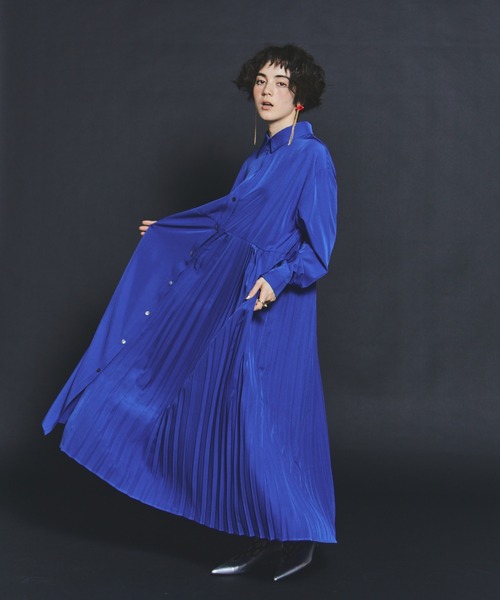大人気シリーズアシンメトリープリーツワンピースからベーシックで使いやすい無地のロングスリーブバージョンが登場。