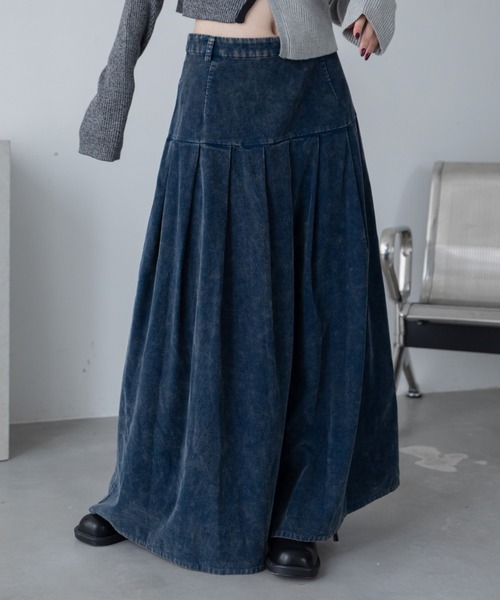 注目のストーンウォッシュ加工で、ヴィンテージライクな風合いを楽しめるスカート。