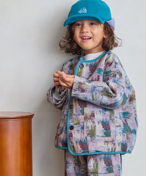 多色の糸で描いたアートのようなゴブラン織を贅沢に使用したノーカラージャケット。