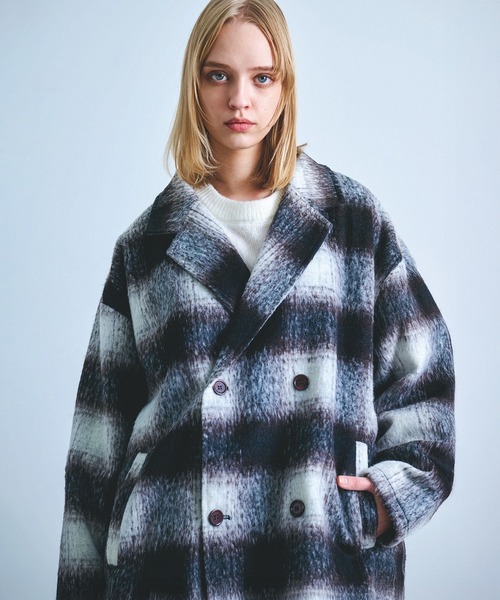 肌触りがよくフェザーのような毛足のあるシャギーメルトン素材を使用したダブルブレストコート。リラックス感のあるゆったりとしたサイジングに仕上げているので、スウェットやパーカー、ニットなど厚手のアイテムとレイヤードしても窮屈感なく着用頂けます。裏地には着心地を考慮して滑りの良いポリエステル生地を使用。風も通しにくくなっているので、防寒性も高められています。左右それぞれにハンドウォーマーポケットも付いていて利便性の高いデザインも魅力的。首元がすっきりとしたダブルブレストデザインで、フーディーやハイネック等のインナーやボリューム感のあるマフラーなどとも好相性。肩幅と身幅にゆとりを持たせたトレンドライクなルーズシルエットで、コーディネートに取り入れるだけで簡単に今っぽく、そしてお洒落に格上げしてくれます。ソリッドカラーのグレー、チャコール、チェック柄のホワイト、ブラック、レッドの計5色展開。スラックス、革靴などと合わせてアダルトな雰囲気に、ダメージデニムパンツやカーゴパンツ、サイドラインパンツなどと合わせればトレンド感溢れるストリートコーデに仕上がります。