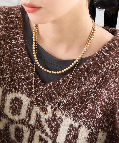 重ねるだけでこなれ感を演出する、ボールチェーンセットネックレス●大小異なる2本のボールチェーンがセットになったネックレス