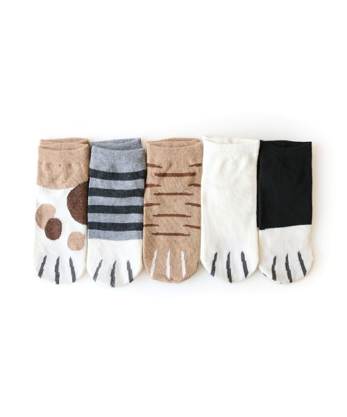 ・履くだけでほっこりしちゃう、にゃんともリアルな”ねこのて”ソックス。「靴下猫」に「トラ柄」に。しかも足裏にはキュートなピンクの肉球!猫好きさんにはたまらない、ソックスセットに仕上がりました♪