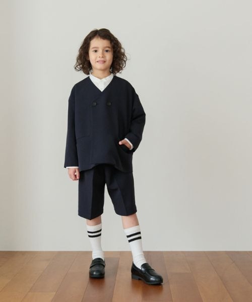 べーシックなネイビーと大人っぽいグレージュの2色展開でご用意しました!素材もポリエステルなのでシワになりにくく、伸縮性もあり手洗いで洗濯も可能です!ショートパンツはイージー仕様なので着脱もしやすくストレスなく履いていただけます。オケージョンだけでなく、冠婚葬祭や発表会のシーンでも使えるアイテムです。