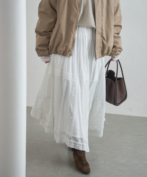 贅沢にたっぷりとした分量感でお作りしたコットンレーススカート。