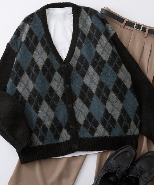 参考商品名:モヘアライクWジャガードニットアーガイル柄ルーズカーディガン