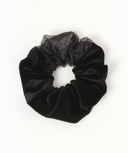 ベロア素材とドット柄のチュール素材を組み合わせたシュシュ。