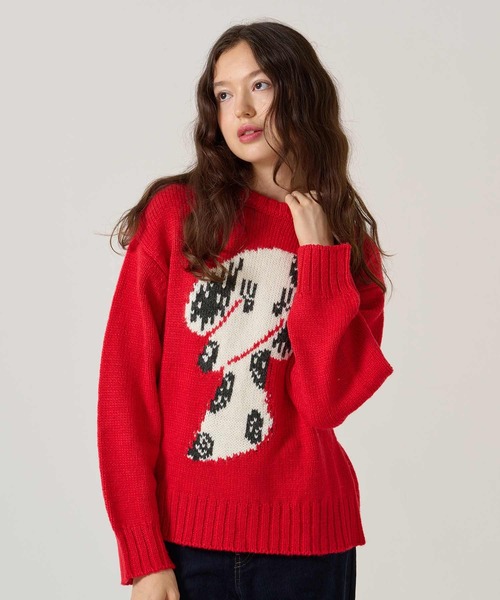ディレクターオリジナルの犬イラストを大胆にあしらった、遊び心たっぷりの主役ニットプルオーバー。