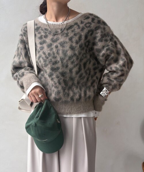 ■2025 AUTUMN & WINTER ITEM■派手すぎない大人の個性を引き出してくれる!毛足の長い起毛感が、ふんわりと暖かなレオパード柄ニットプルオーバー。