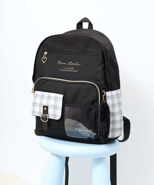 ・前面にクリアポケットとチェック柄ポケット付き