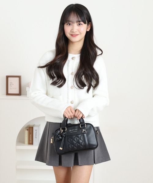 黒のキルティングデザインに小さなリボンチャームをあしらった上品で可愛い2WAYバッグ。